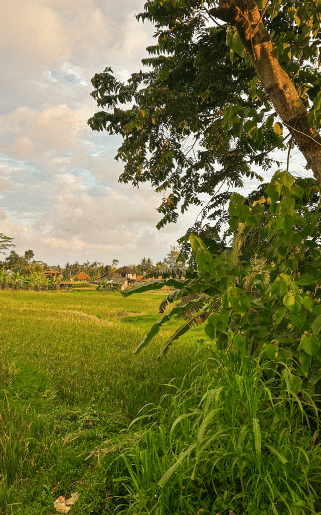 Just a short walk away from the main roads, you’ll find yourself in almost empty rice fields, surrounded by towering trees and silence so pure you remember you’re on a tropical island where nature is everywhere.
