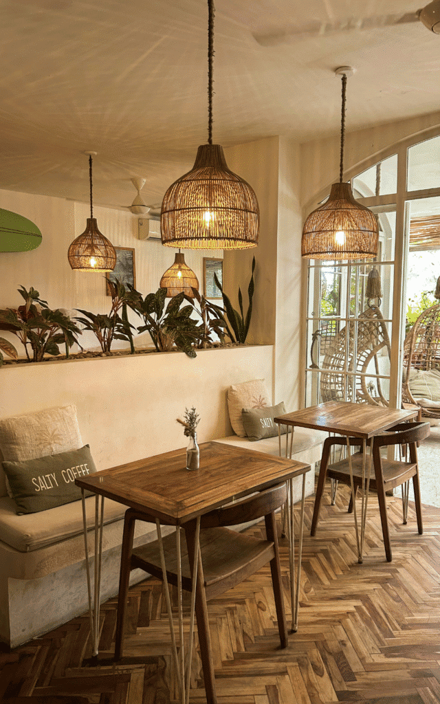 Salty Coffee has the cutest island-style décor and furniture: rattan chairs, lamps, and plants all around the café. There’s both an indoor and an outdoor area.