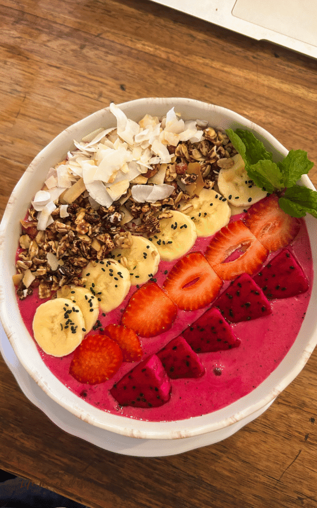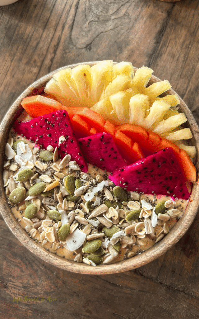 Let’s start with my go-to: smoothie bowls—especially after realizing that eggs don’t get along with my hormonal system.