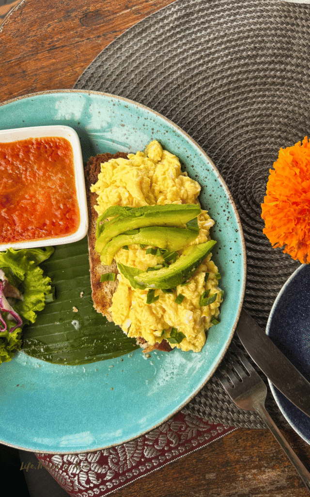 In Ubud, you’ll find eggs on almost every breakfast menu—omelets, scrambled, poached on avocado toast… all kinds of eggs. It’s definitely not something you’ll have trouble with.