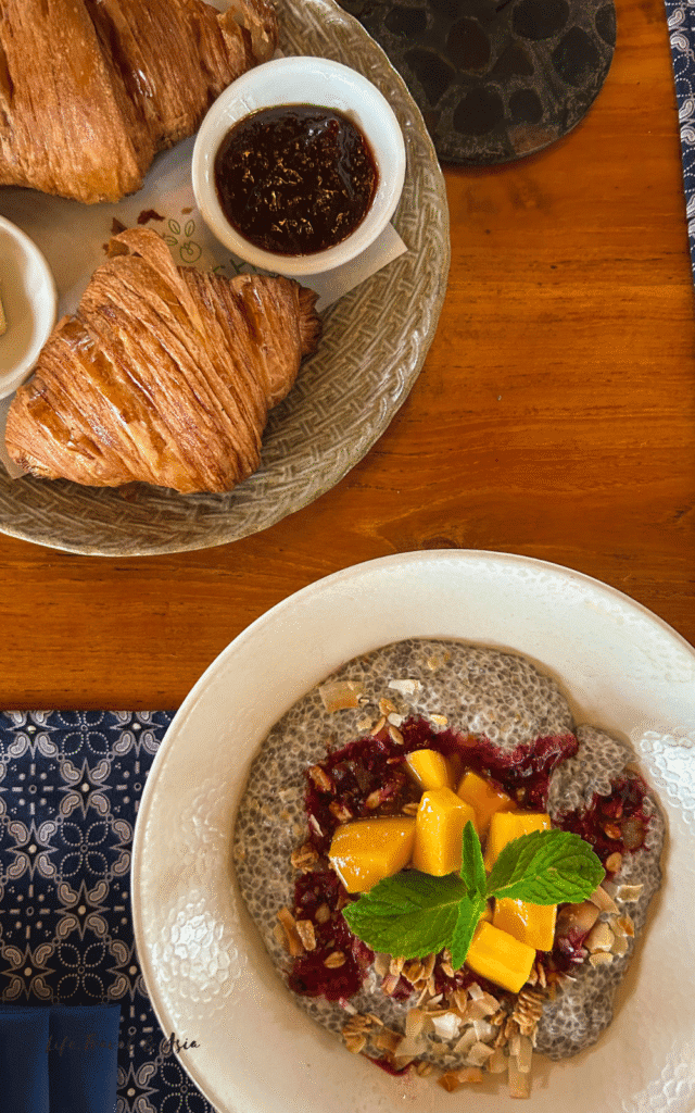 The second reason I keep coming back, especially in the morning, is the atmosphere. Sweet Orange Warung is surrounded by stunning rice fields, with calming spiritual music playing in the background, and inspirational quotes scattered around the space that might just spark something within you.