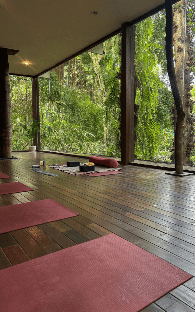 Ubud’s ever-present nature becomes part of the experience itself, whether it’s the jungle visible through the wide windows of a yoga shala or the steady sound of tropical rain during the practice.